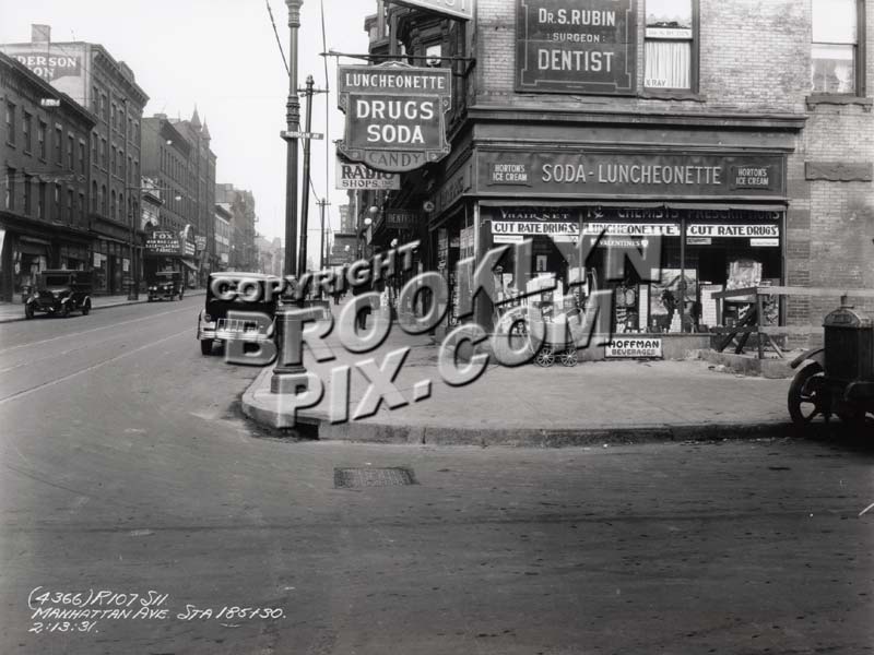Manhattan Avenue at Bedford Avenue, looking west, 1928 (1)
